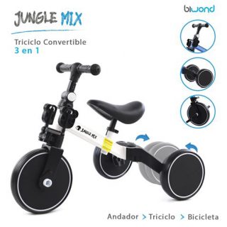 TRICICLO INFANTIL CONVERTIBLE 3 EN 1 JUNGLE MIX BLANCO BIWON