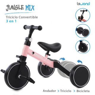 TRICICLO INFANTIL CONVERTIBLE 3 EN 1 JUNGLE MIX ROSA BIWOND