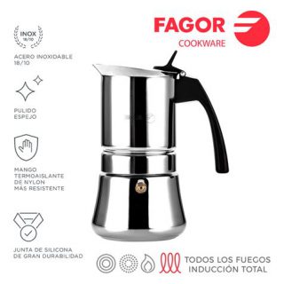 CAFETERA INOX ETNICA 4 TAZAS ACERO INOXIDABLE 18/10 FAGOR