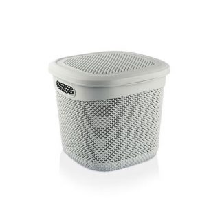 Add to cart– Cesta con forma cuadrada de alta altura con asas y tapa incluida, fabricada con resina de color gris. Ideal para ordenar objetos de baño.– Color Gris– Capacidad: 15 Litros– Dimensiones: 32 x 30,5 x 28cm (largo x ancho x altura)
