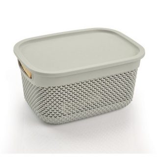 Add to cart– Cesta con forma rectangular de mediana altura con asas y tapa incluida, fabricada con resina de color gris. Ideal para ordenar objetos de baño.– Color Gris– Capacidad: 6,6 Litros– Dimensiones: 29 x 21,5 x 15cm (largo x ancho x altura