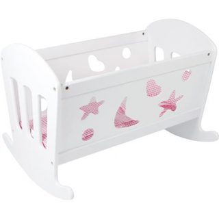 Add to cart¡Esta fantástica cuna blanca de madera es el sueño de todas las muñecas! Por sus bonitos detalles de luna, sol y estrellas que decorán ambos lados, todas las niñas desean tenerla.Cuna pintada de blanco con aplicaciones preciosas, sol, luna