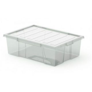 CAJA TRANSPARENTE CON ASAS Y RUEDAS 30 LITROS 55X39X17.3CM B