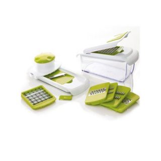 Add to cart– Bol de 1,2 litros incluido (para que los ingredientes cortados caigan directamente)– Base y mango antideslizantes– 7 cuchillas intercambiables incluidas: – Rallador fino – Cortador en juliana – Rallador – Cortador
