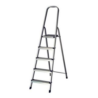 Add to cart– Escalera multiusos metálica plegable con 5 peldaños, fabricado en aluminio de alta resistencia de color gris, haciendo de esta una escalera totalmente resistente y estable. Peldaños y tacos recubiertos de silicona totalmente antideslizante.