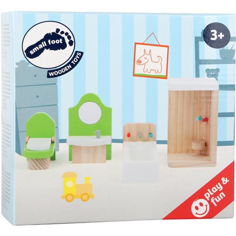.Set de muebles para el cuarto de baño para muñecas, hecho de madera sólida durable y adaptados al tamaño de las muñecas. Asegura mucha diversión al jugar una y otra vez. Además se fomenta la imaginación y estimula las habilidades motrices fina