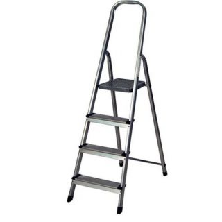 Add to cart– Escalera multiusos metálica plegable con 4 peldaños, fabricado en aluminio de alta resistencia de color gris, haciendo de esta una escalera totalmente resistente y estable. Peldaños y tacos recubiertos de silicona totalmente antideslizante.